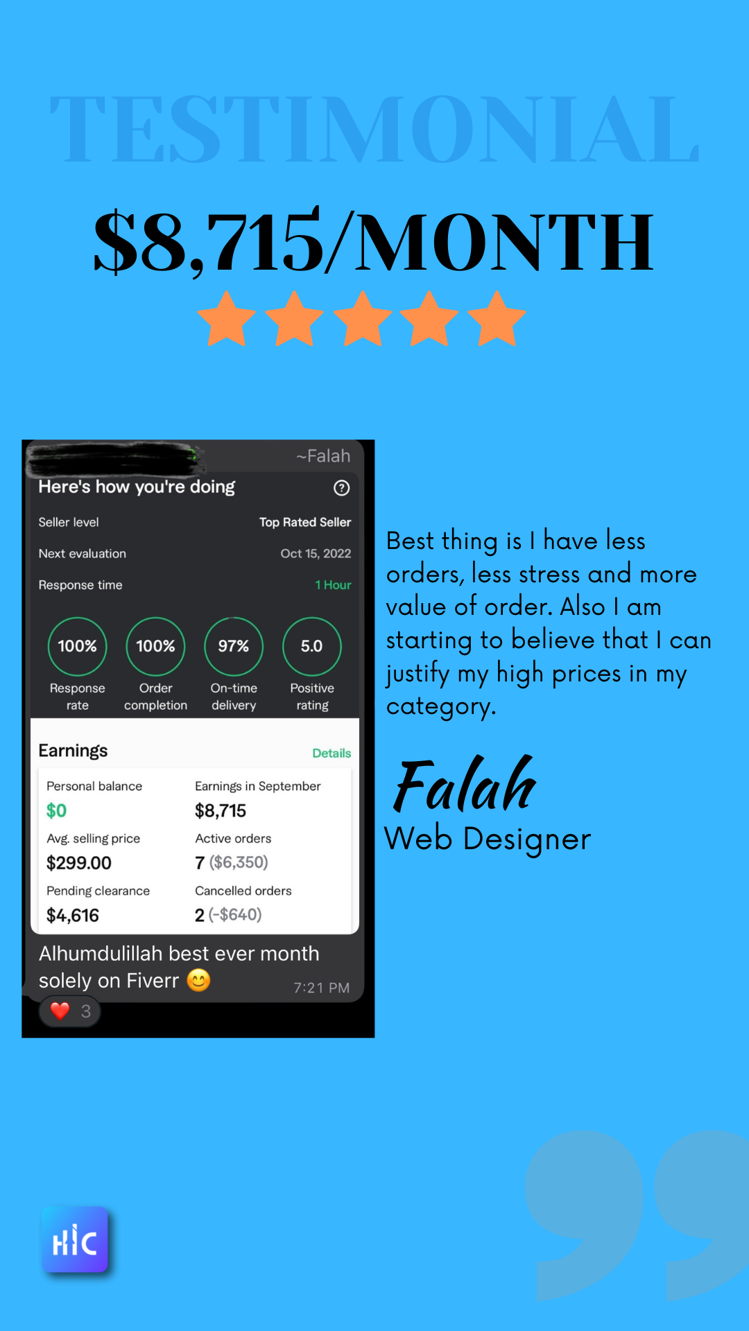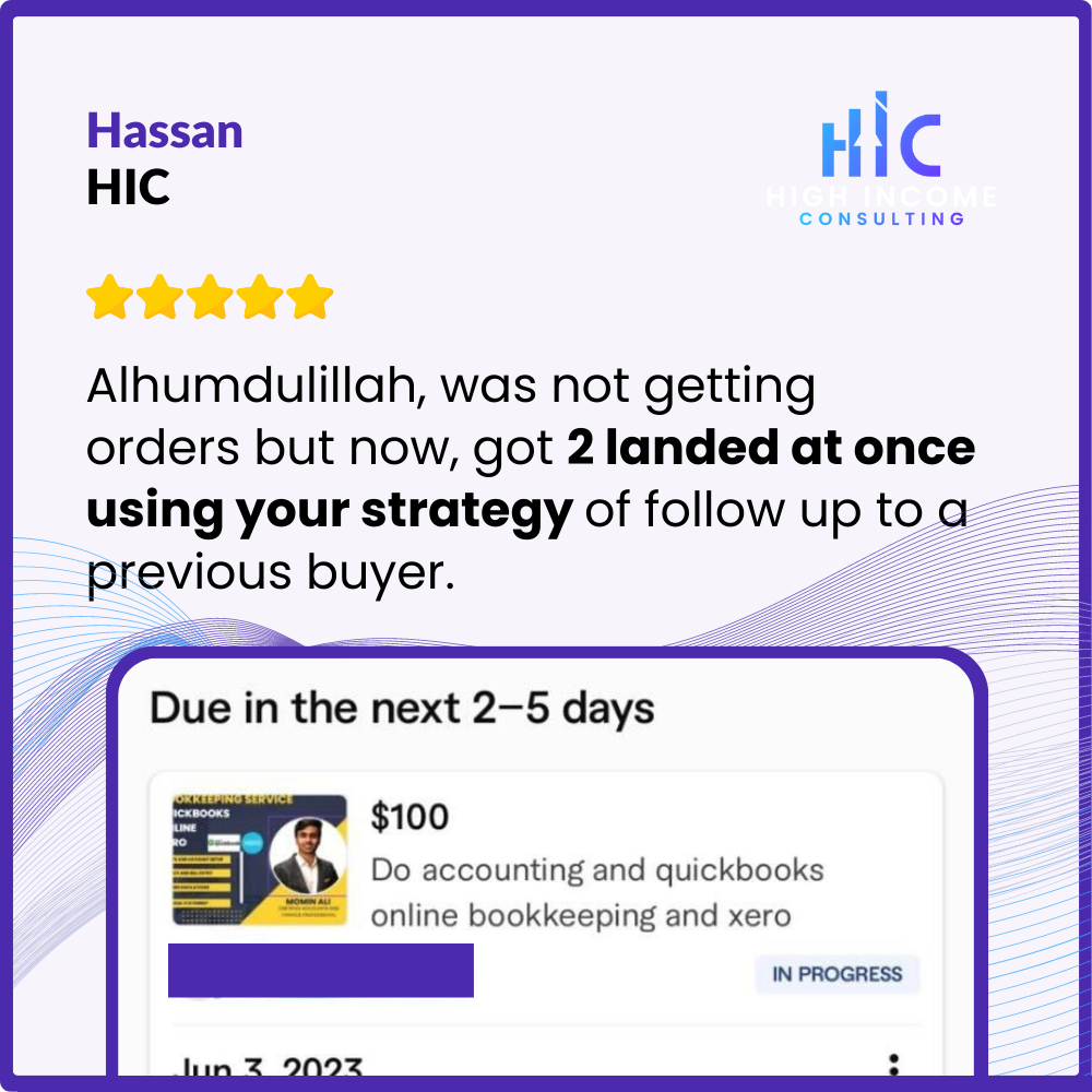 ✅He attracted more High-Ticket Clients thanks to the High Income Consultant Framework which meant no more slaving away on low-paid Fiverr Gigs