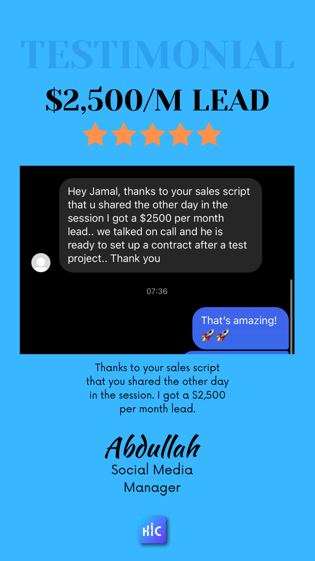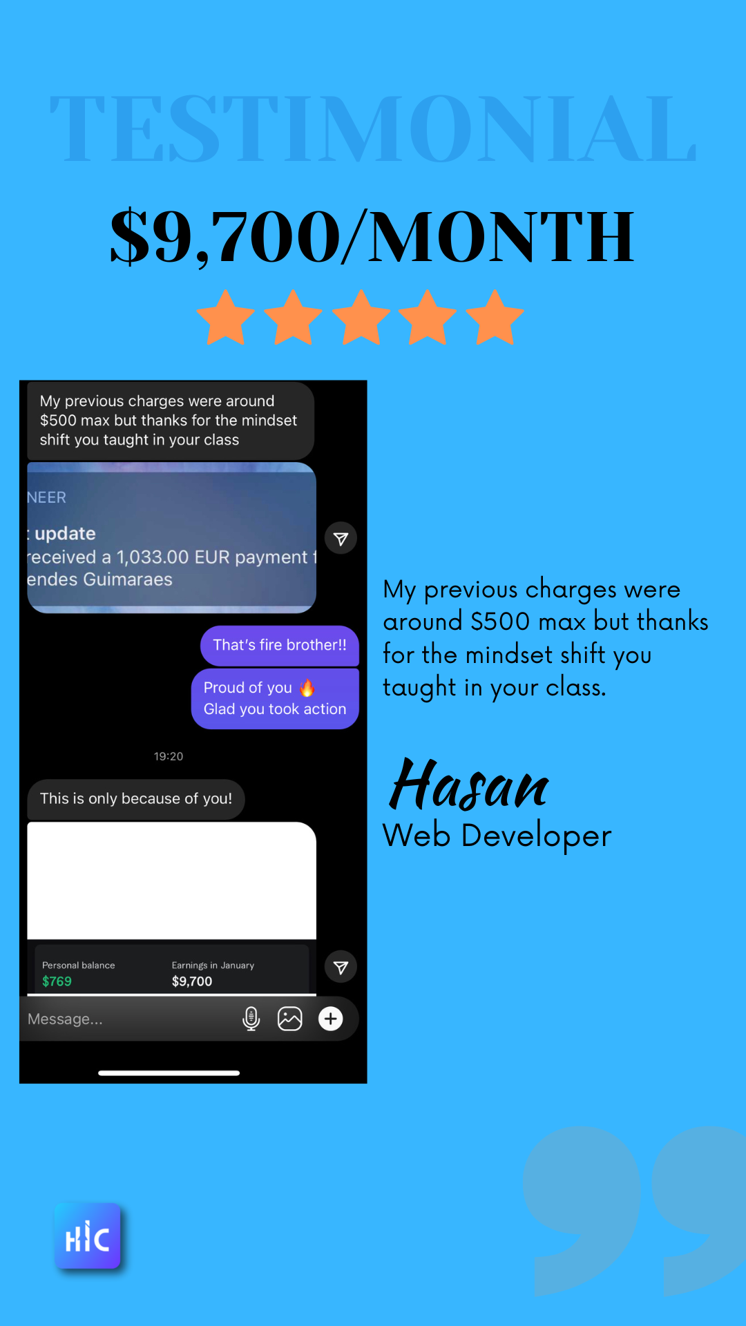 ✅He mastered secret Sales & Negotiation techniques I teach in the HIC 2.0 and quickly started closing High-Ticket Clients on Zoom calls.